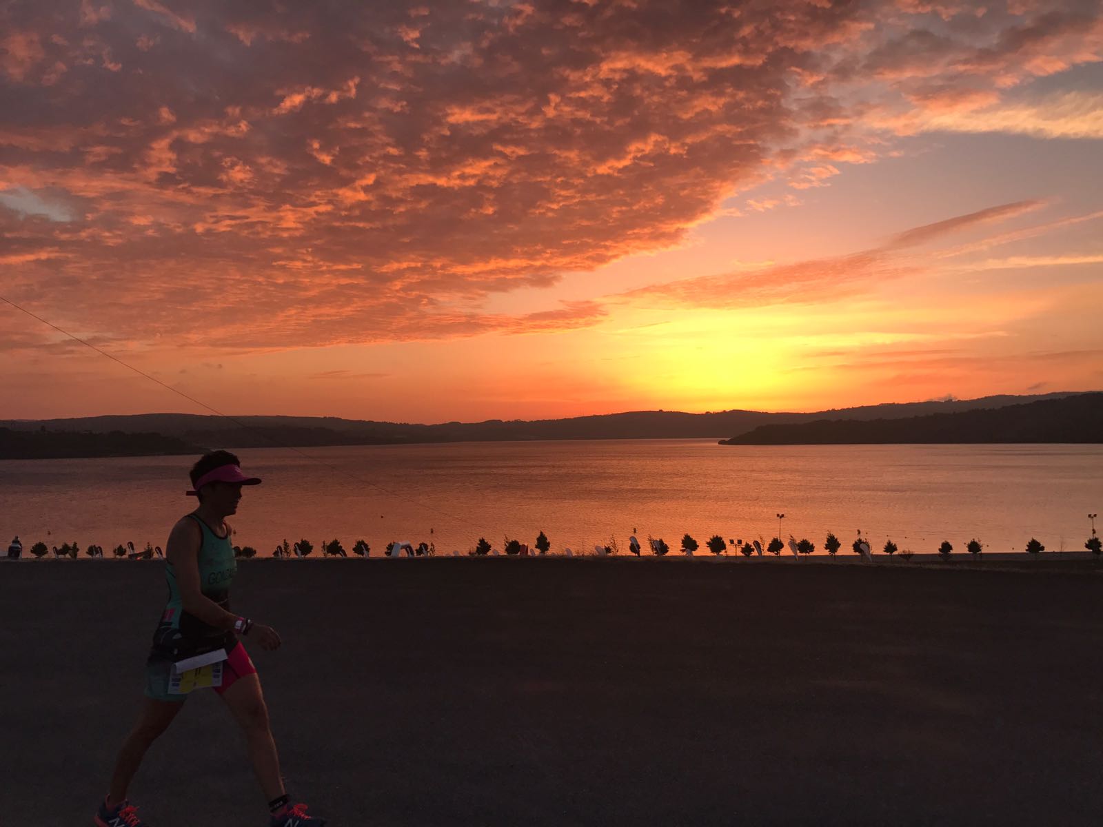 Veo ya el lago, dios mío, voy a cruzar esa línea de meta, sí, lo voy a hacer. El sol se ponía, el paisaje no podía ser más bonito, aunque mis ojos, que sudaban, no me permitían verlo bien. Se acaba el asfalto y toda esta emoción, transmite a mis piernas la fuerza necesaria para entrar corriendo por ese maravilloso arco de META.